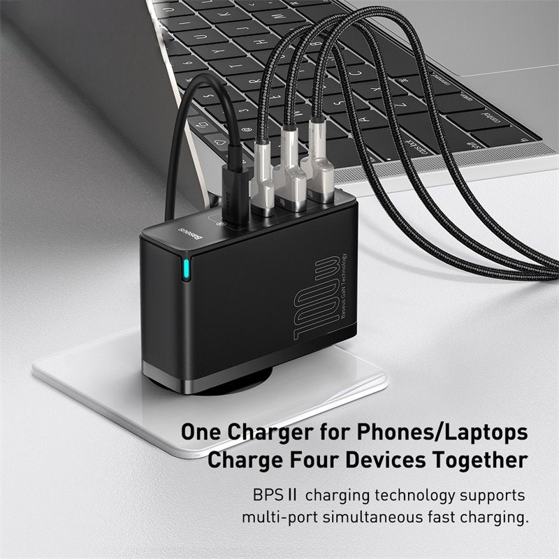 Power up multiple devices simultaneously with our Quad Power Hub, a 100W four-port charging adaptor. With its versatile design, this adaptor ensures efficient charging for all your devices in one go, making it the perfect solution for your charging needs.